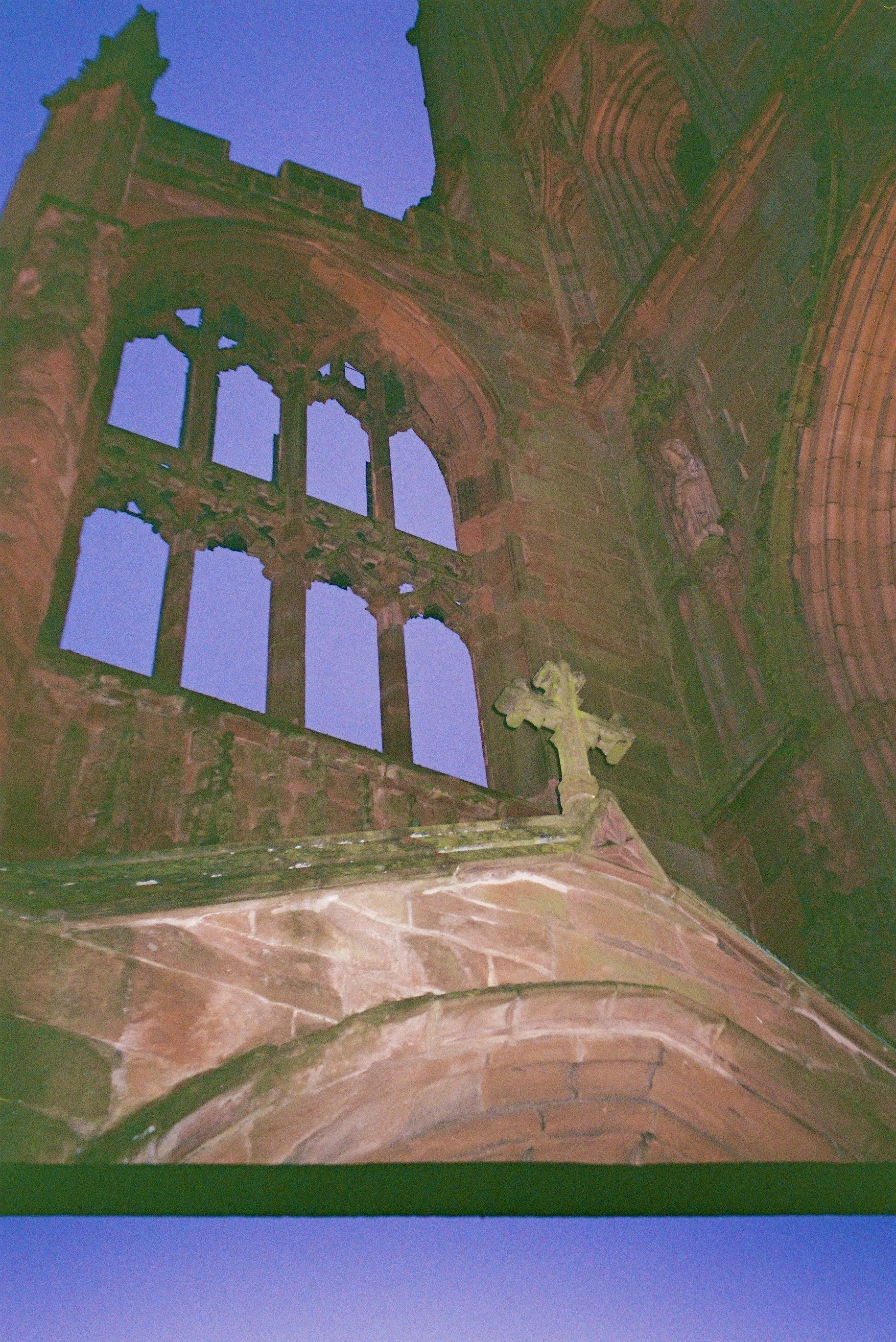 The New Cathedral embodies the post-war spirit: new birth from old wounds, its structure rising — born again like a phoenix — in red and pinkish stone from the ashes and rubble of its predecessor. Though built from the same Hollington sandstone as St Michael’s, its modernist architecture stands in stark contrast to the grand Gothic structure it accompanies. Replaced does not feel like the right word. Perhaps relieved is closer: the New Cathedral lifting the weight of spiritual responsibility from the Old’s broken shoulders.