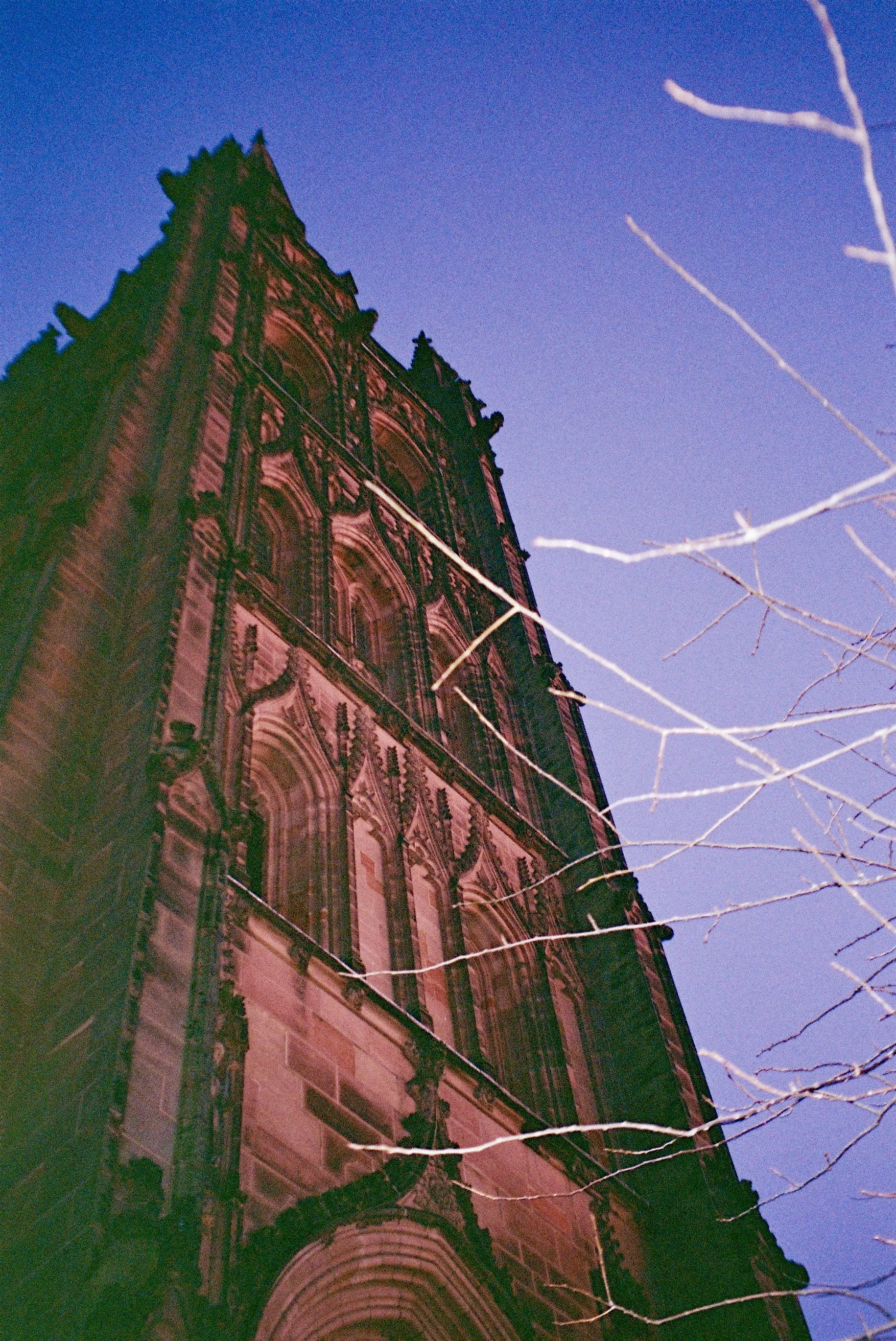 I wander up the stairs and under the towering arch that connects the two great structures and spans the gap in centuries. I stop to stand a moment in rapt wonder as the old spire is framed by massive Hollington stone pillars, the purple sky of the day’s last light tinged with the deep blue of oncoming night, forming the perfect backdrop for my moment of contemplation. The thoughts and feelings evoked by this place wash over me in a moment of moving clarity, clearing my mind of all other worldly worries, which pale in comparison to the hardships and horrors faced by those at home and abroad during those dark days of human history.